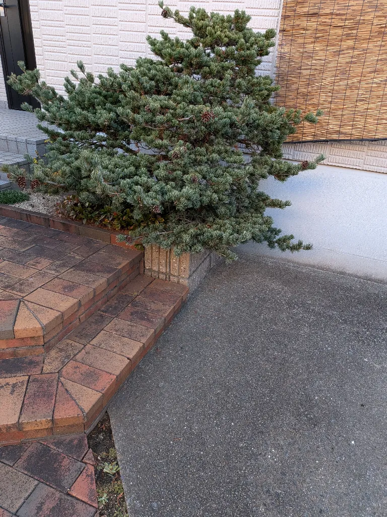 紅葉と五葉松は、どちらも玄関まわりの「顔」になる大切な庭木です。