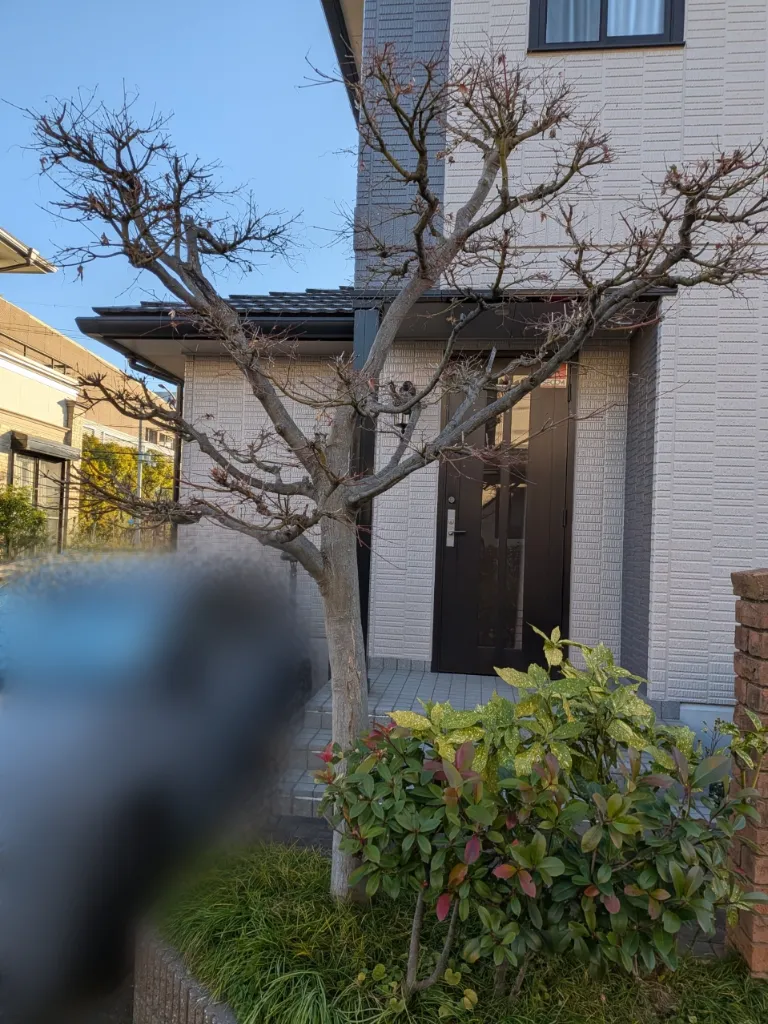 ホームページからのご依頼|紅葉と五葉松の剪定で玄関まわりを美しく整えました