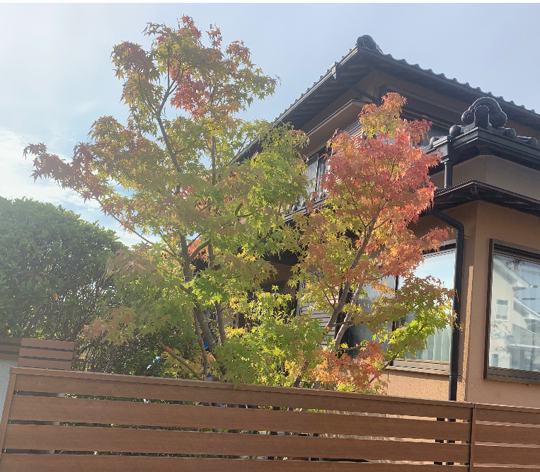 秋らしい紅葉のグラデーションが美しく、お庭全体の景観を引き立てる作業となりました。