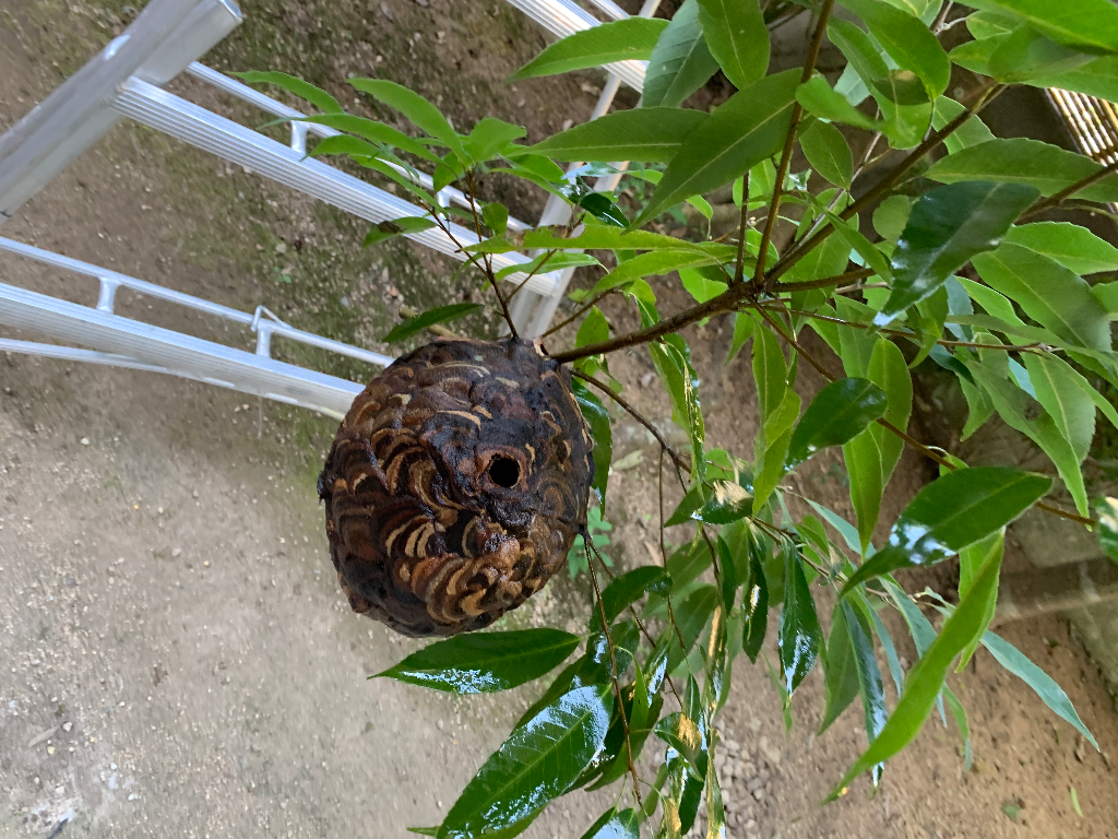 姫路市でスズメバチの巣を発見!見積もり中の危険箇所も即対応|安全第一の植木屋藤一
