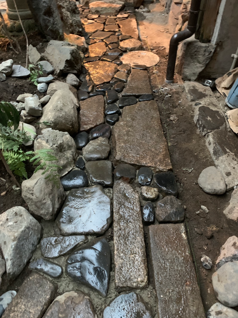 それぞれの石の個性を生かしながら、歩きやすく見た目にも美しいアプローチをつくり上げます。
