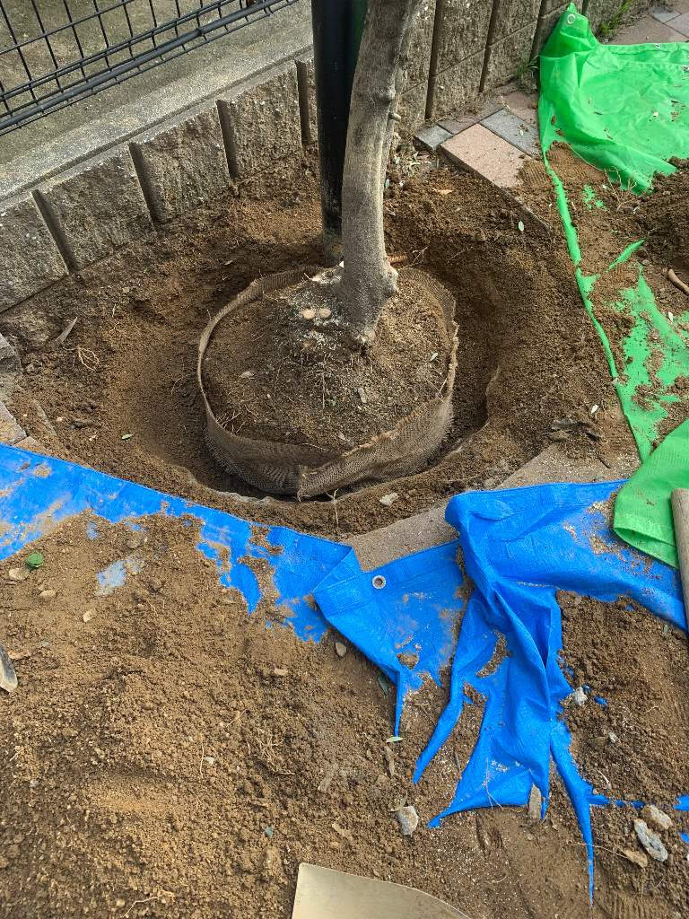 - 掘り出した根は乾燥しないよう、湿らせた土や根巻きシートで保護